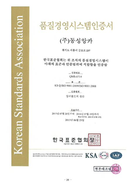 품질경영시스템인증서